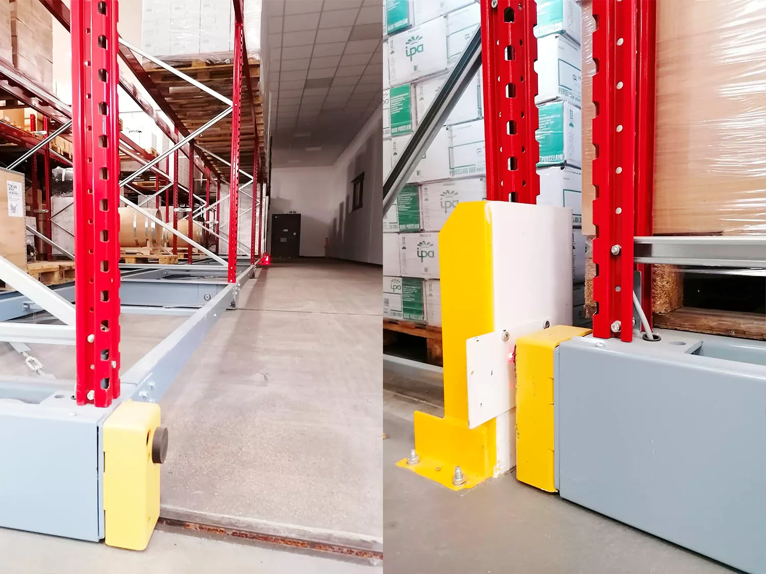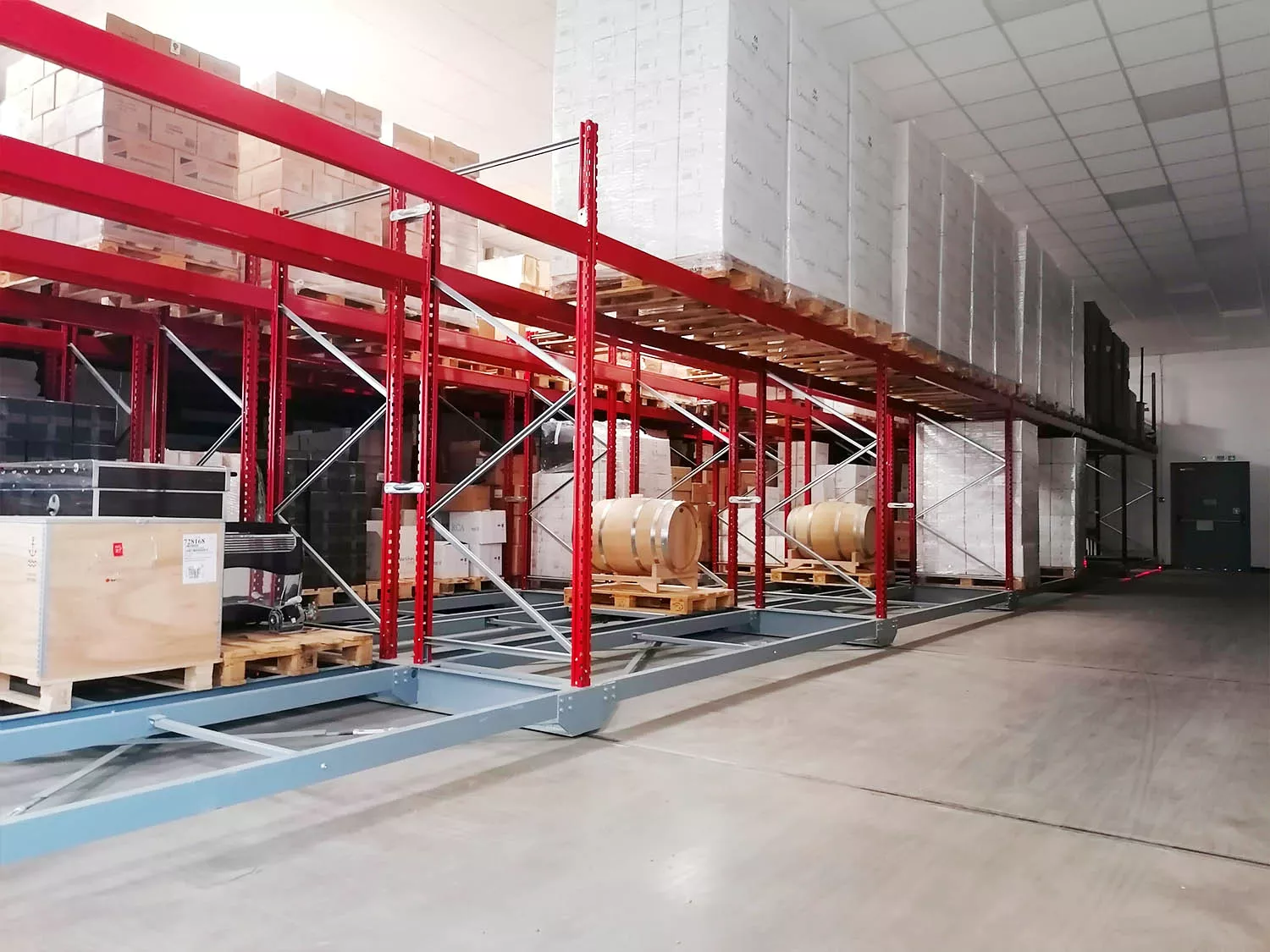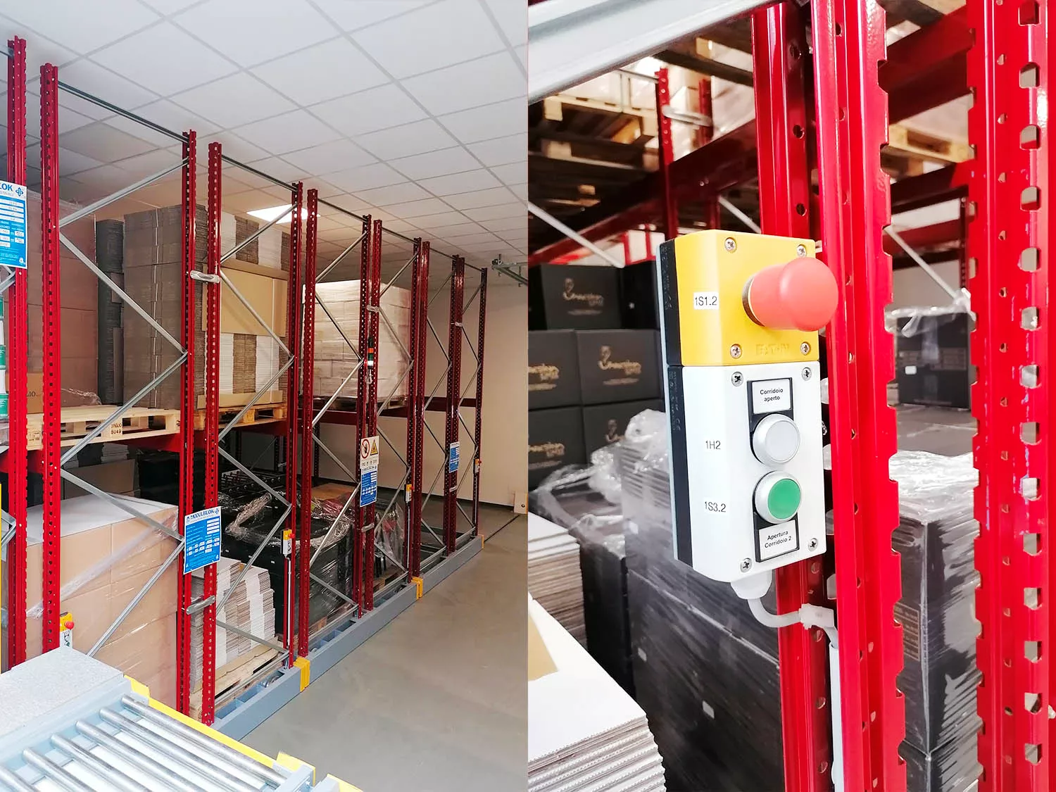 Installazione di un magazzino compattabile con scaffalatura per pallet.