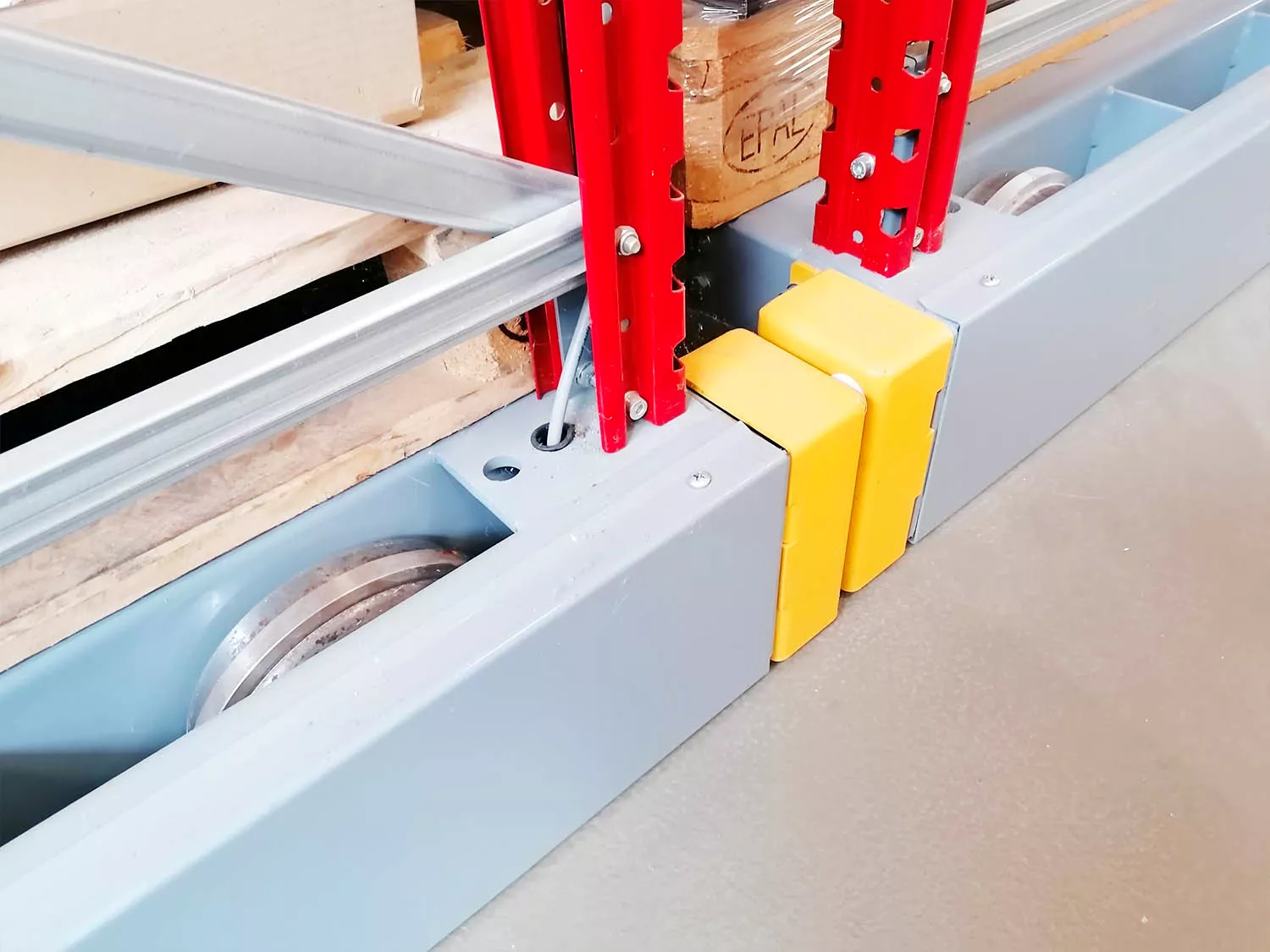 per la movimentazione dell’impianto le basi sono state fornite di motori da 0,37 KW cad. per un totale di 20 KW di potenza istallata. La velocità di traslazione è pari a 5,4 mtl/min, per un tempo totale di apertura corridoio di circa 30 secondi + 1,5 cad. base. L’impianto è corredato di fotocellule di sicurezza per il controllo del movimento.
