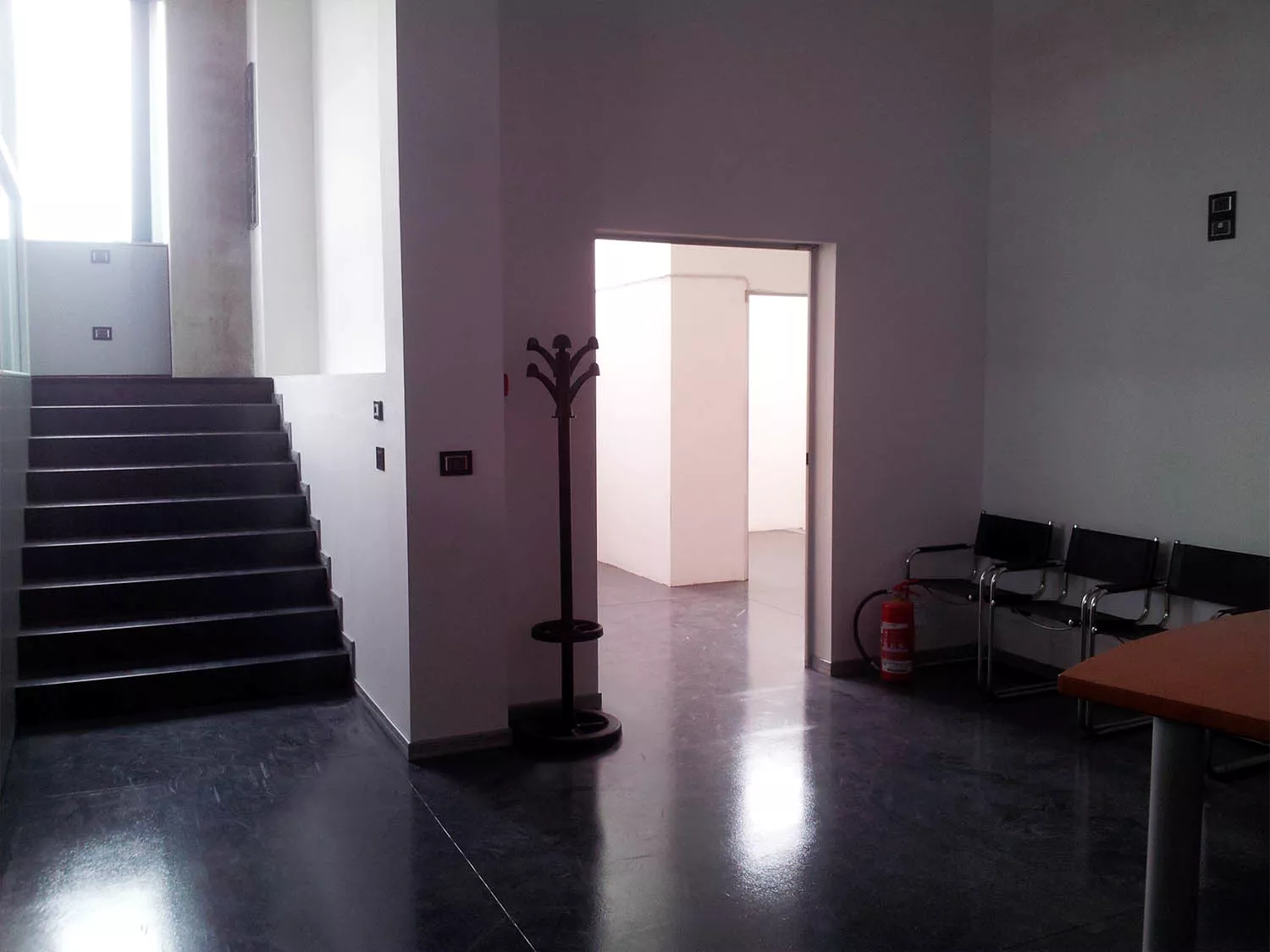 All’ingresso della zona così ottenuta abbiamo ricavato un’ampia reception che ospita alcune postazioni dedicate alla scansione e consultazione di documenti digitali. Sulla sinistra si sviluppano i singoli uffici che sono in posizione sopraelevata grazie ad un pavimento tecnico con supporti fuori standard che hanno permesso di posizionare il piano di calpestio ad un’altezza adatta a raggiungere e sfruttare le finestre preesistenti. La divisione tra uffici e reception è avvenuta grazie a pareti mobili abbinate a porte e pareti vetrate. Le varie sale sono servite da una scala e sono raggiungibili attraverso un ballatoio con parapetto in vetro. Ogni ambiente è stato completato da controsoffitto in fibra minerale o alluminio bianco, plafoniere led, impianto di climatizzazione e con le nostre soluzioni d’arredamento ufficio.