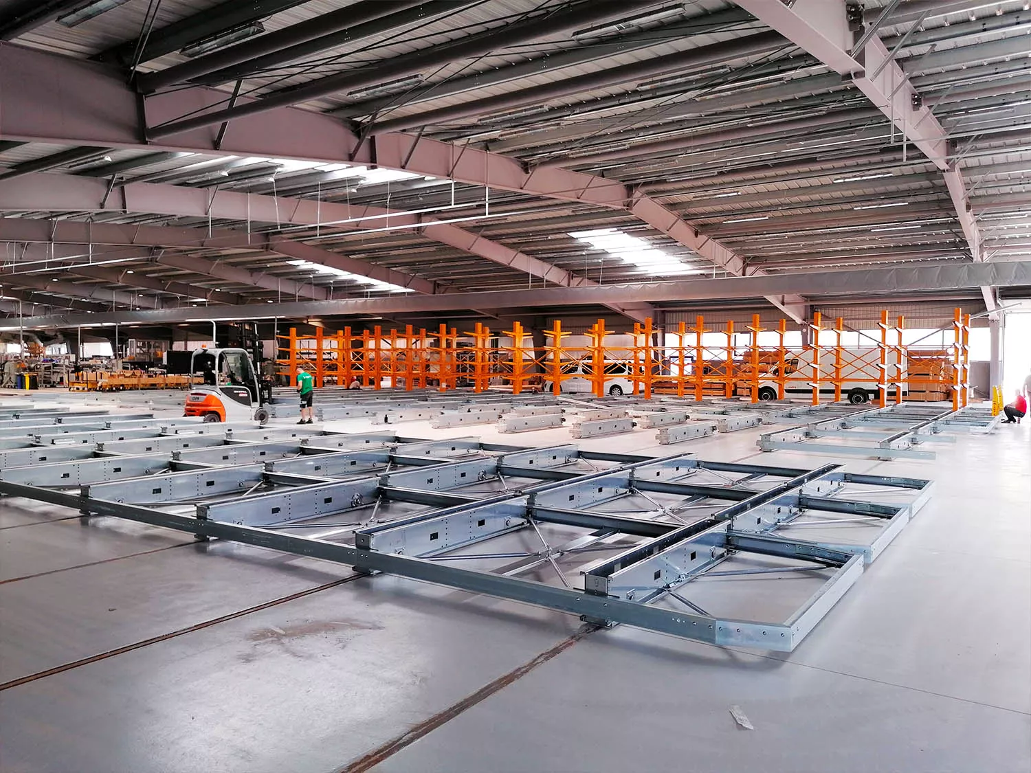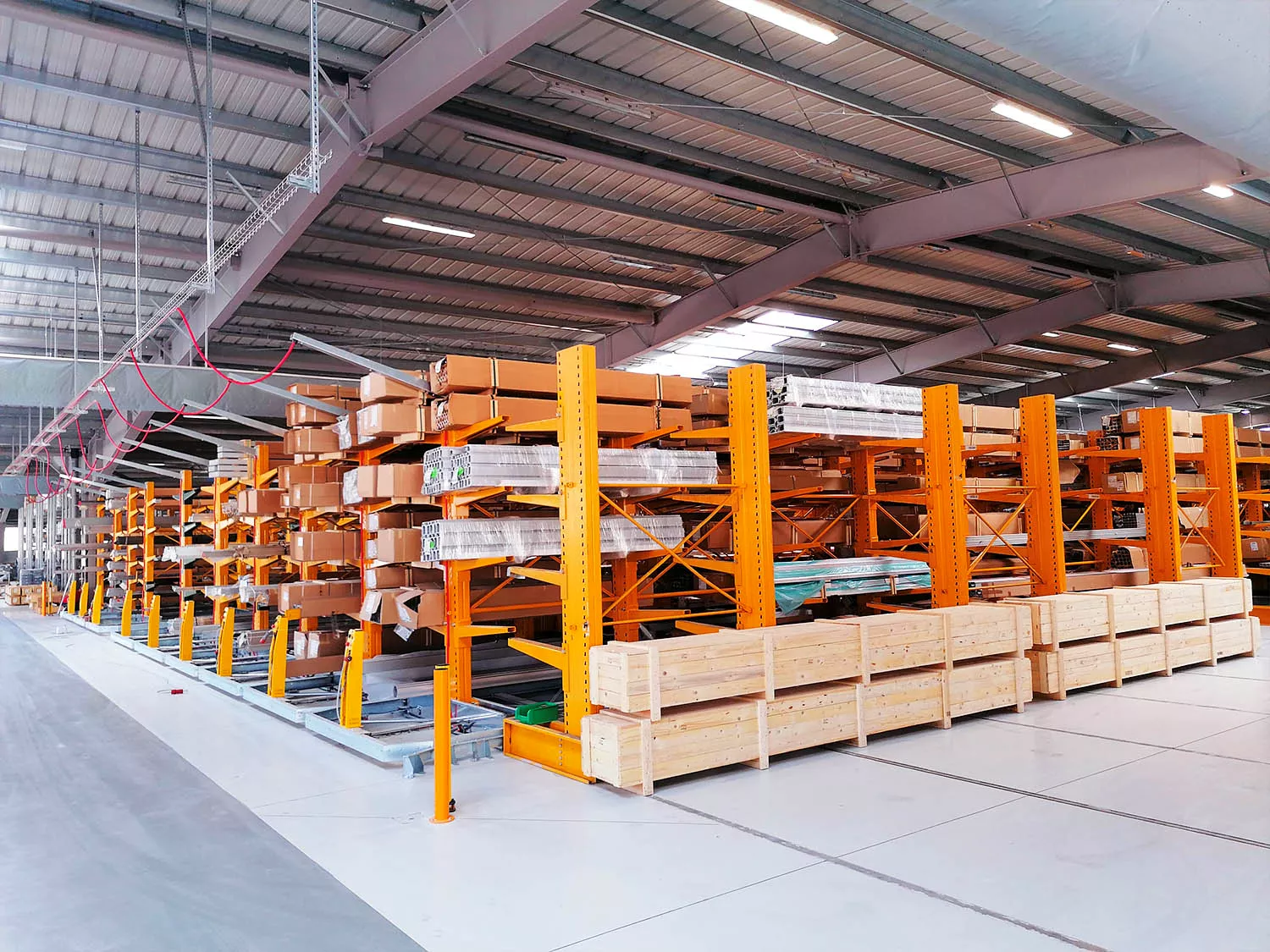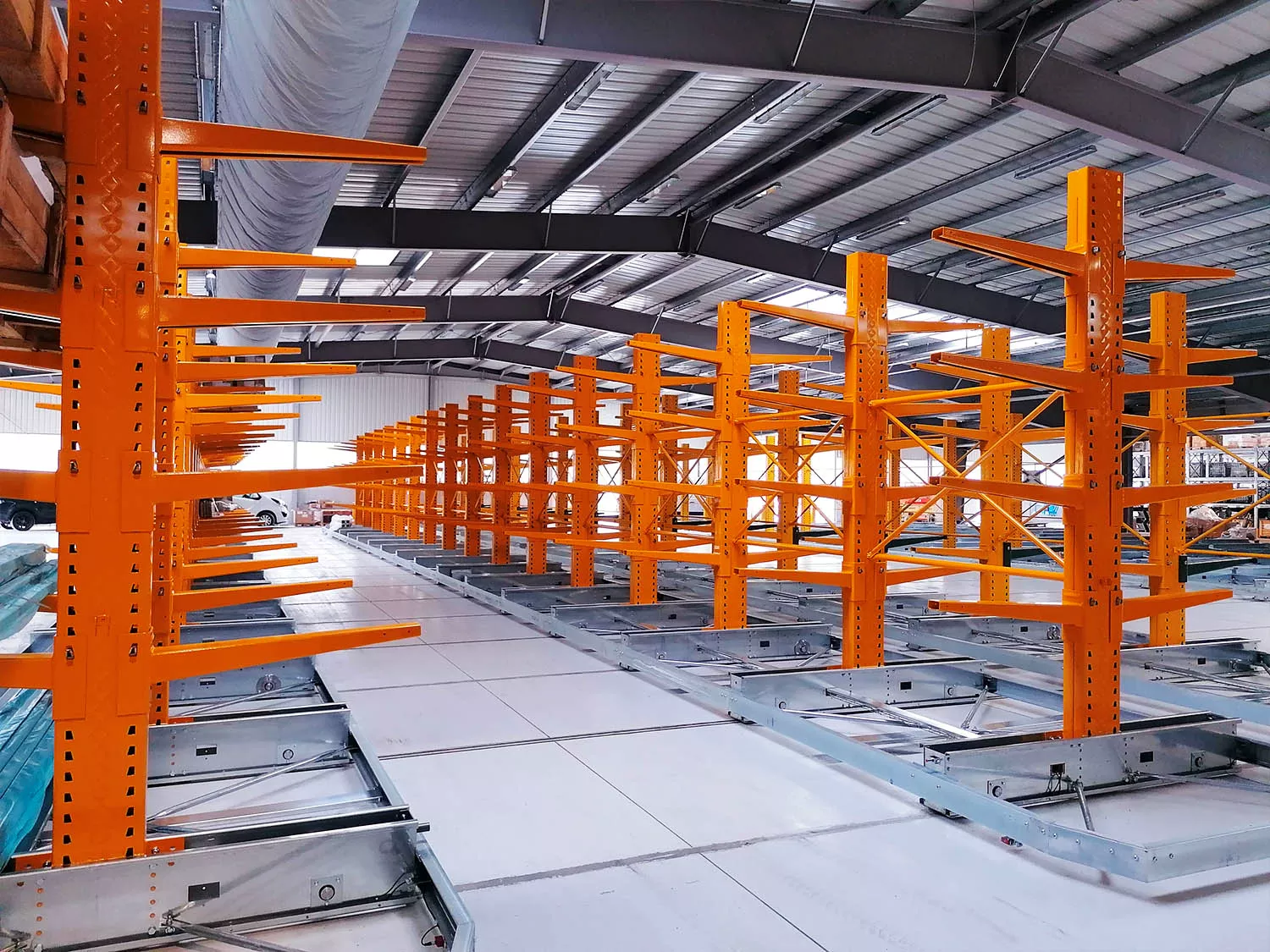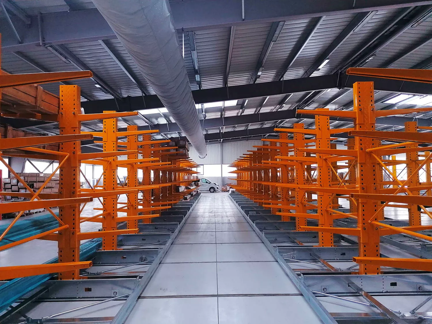 una volta posizionate le basi sono state montate su di esse 12 file di scaffalature cantilever appositamente pensate per lo stoccaggio di corpi lunghi. Le mensole sono adattabili alle caratteristiche del carico e sopportano pesi estremamente elevati. Come da desiderio del cliente è stato possibile adattare la vecchia scaffalatura alle nuove basi integrandola con elementi nuovi.