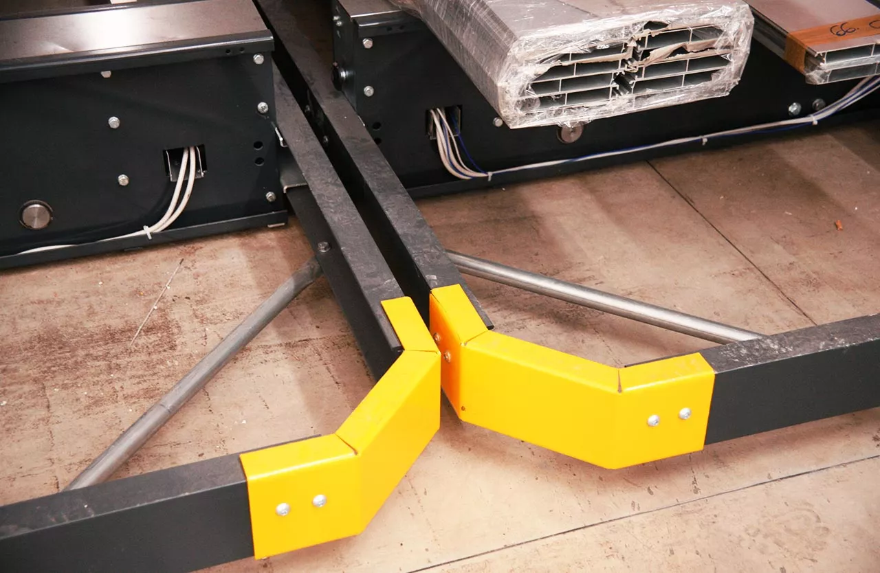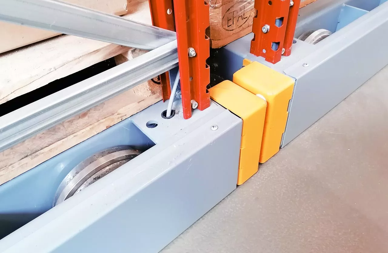 La soluzione compattabile, rispetto a un portapallet classico, offre significativi vantaggi in termini di spazio e efficienza. Riducendo il numero di corridoi necessari per la movimentazione delle merci da 3 a 1, consente di aumentare le file di scaffalature, ad esempio, da 4 a 7, quasi raddoppiando la capacità di stoccaggio. Le basi su cui vengono montati i portapallet sono dotate di motori da 0,37 kW ciascuno, accumulando una potenza totale di 20 kW. Con una velocità di traslazione di 5,4 metri al minuto, l’apertura di un corridoio richiede circa 30 secondi più 1,5 secondi per ogni base. Inoltre, il sistema è dotato di fotocellule di sicurezza che monitorano il movimento, assicurando un funzionamento sicuro e affidabile.