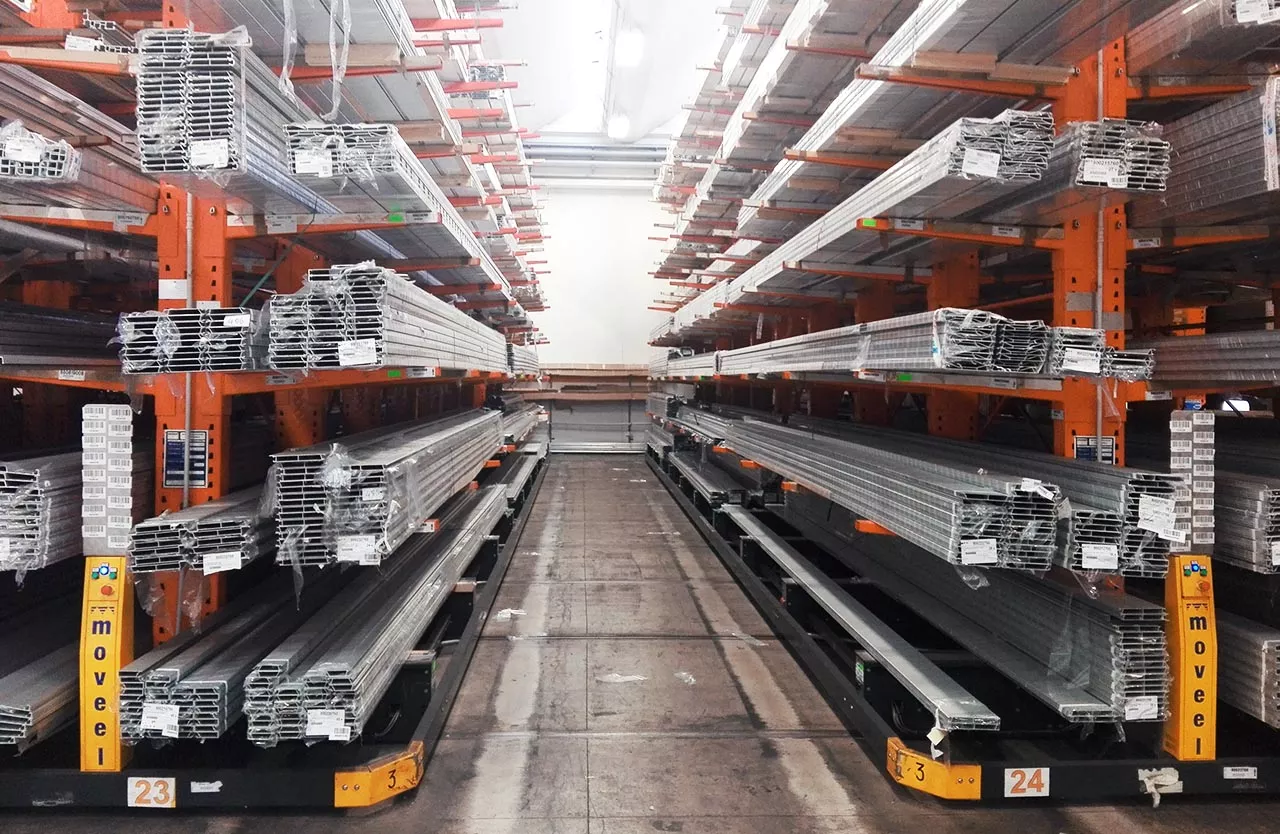 Nel contesto dell'espansione delle superfici di magazzino, una soluzione efficace è trasformare i cantilever statici in sistemi compattabili. Adottare un impianto automatico compattabile consente di minimizzare il numero di corridoi tra le scaffalature, ottimizzando lo spazio disponibile. Ogni singola slitta ha una capacità di 24 tonnellate, con una portata massima per ruota di 12 tonnellate e una portata per base che arriva fino a 240 tonnellate. Le mensole, progettate per adattarsi alle specifiche caratteristiche del carico, sono in grado di sostenere pesi molto elevati. Questo approccio migliora significativamente l'efficienza e la capacità di stoccaggio, rendendo il magazzino più funzionale e capiente.