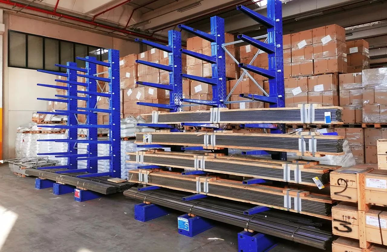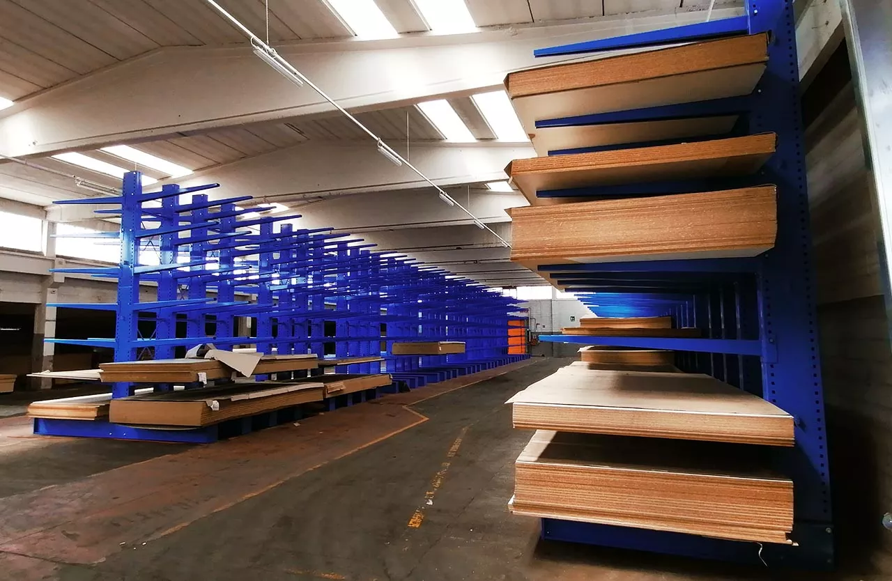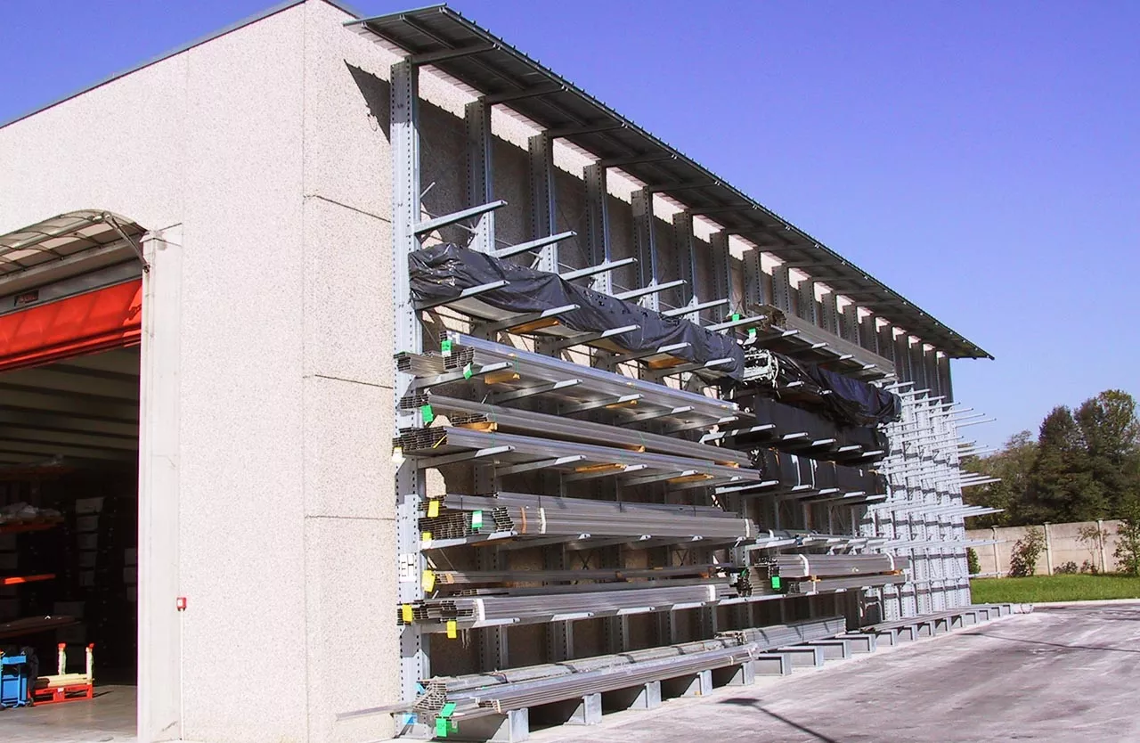 Gli scaffali industriali cantilever sono progettati specificamente per lo stoccaggio di corpi lunghi e ingombranti, come barre d’alluminio, lamiere, tondini, tubi d’acciaio, legname e pannelli piatti.