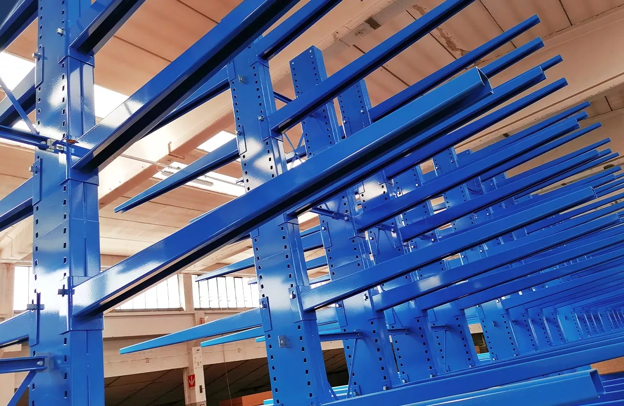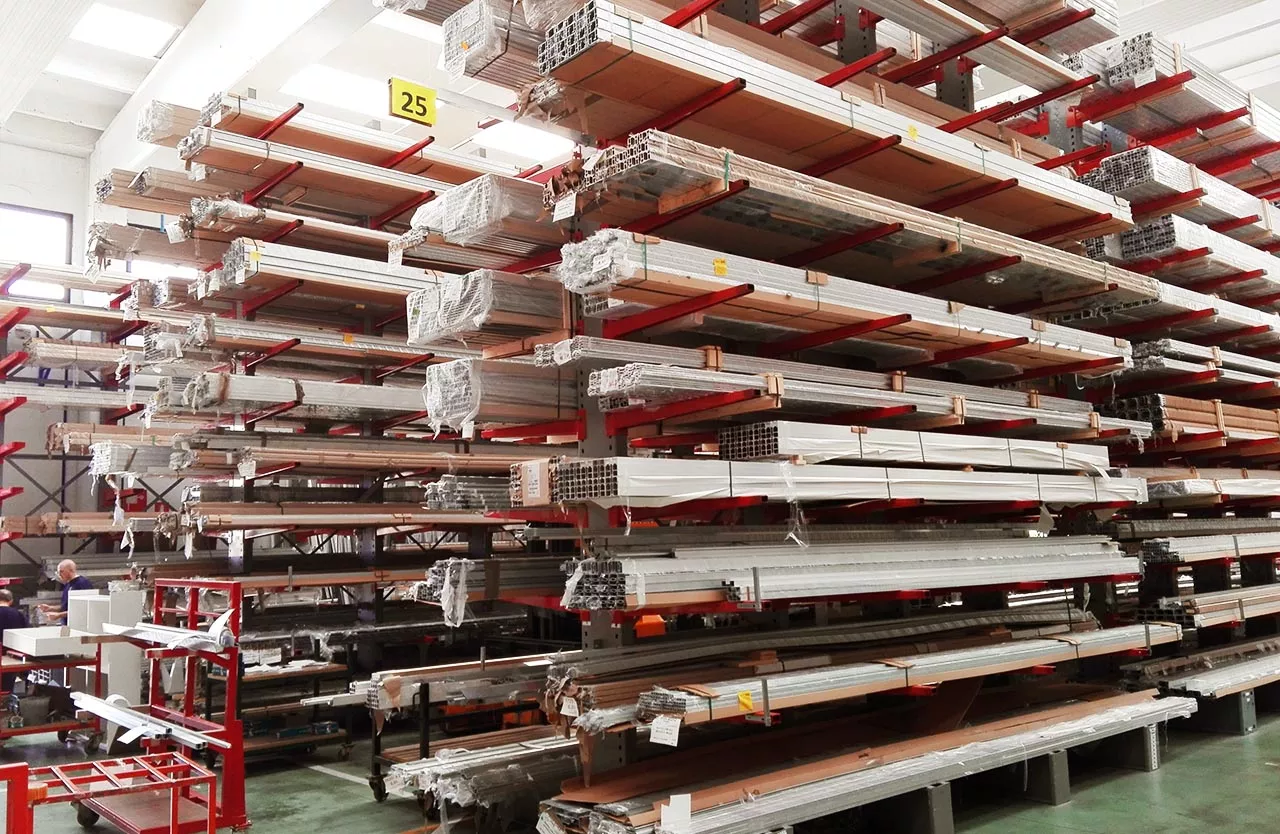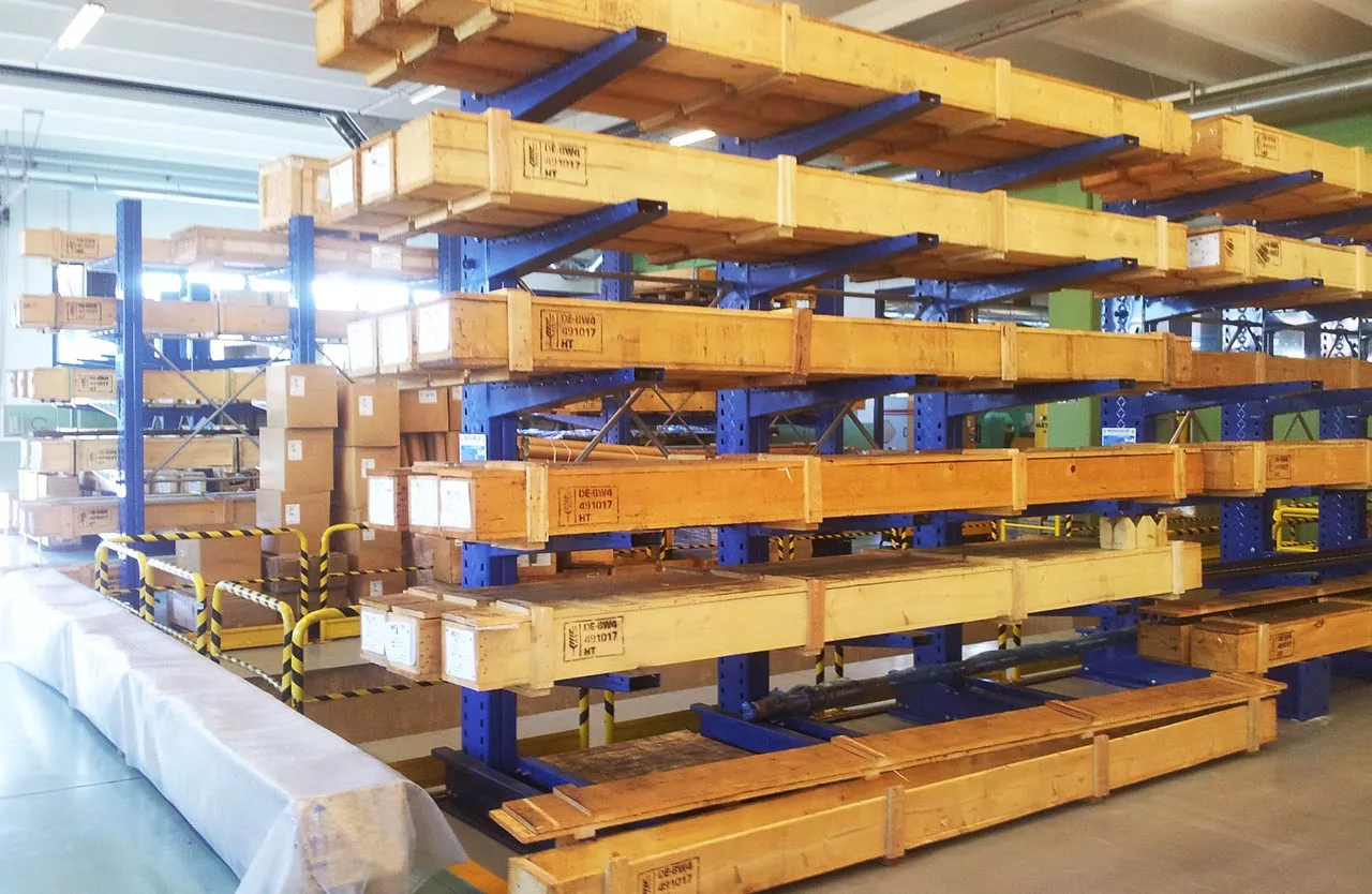 Gli scaffali industriali cantilever sono progettati specificamente per lo stoccaggio di corpi lunghi e ingombranti, come barre d’alluminio, lamiere, tondini, tubi d’acciaio, legname e pannelli piatti.